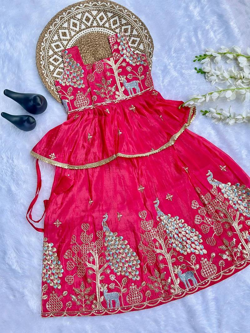 Pure gold crush with peacock design work kids lehenga choli