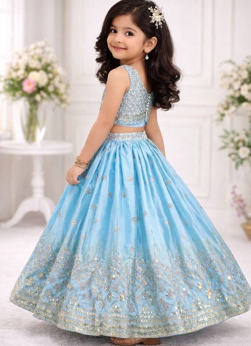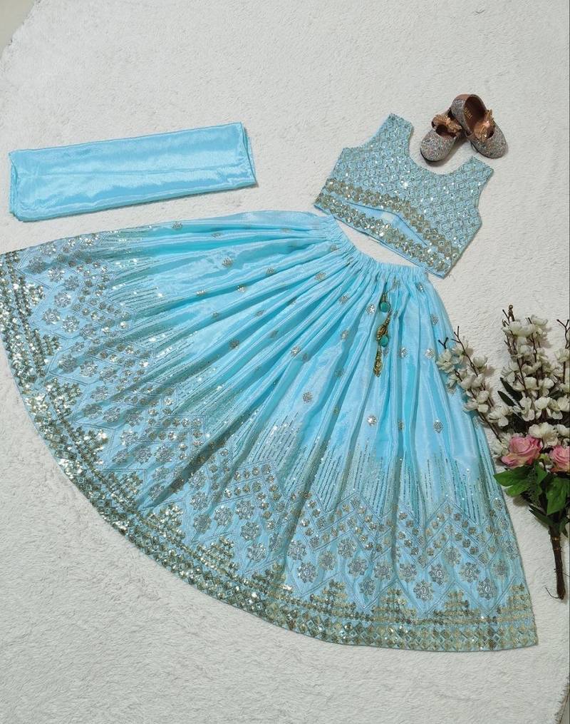 | Product Name | Skyblue Chinon Silk Embroidered Work Wedding Kids Lehenga Choli | |
