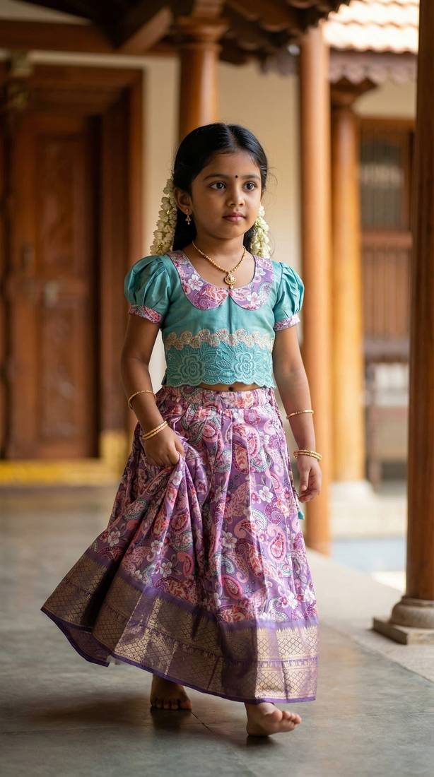 | Product Name | Soft Silk Zari Weaving South Style Kids Lehenga Choli | |