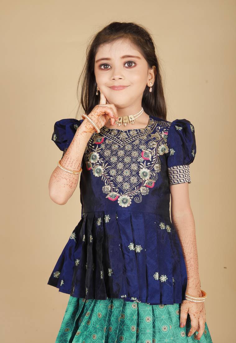 | Product Name | Kids Blue New South Indian Traditional Pattu Pavadai Jacquard Lehenga Choli For Girls Dress | |
