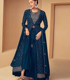 Product Name | Firozi Embroidered Sequined Work Georgette Fabric Party Lehenga Choli Dupatta With Shrug. | |