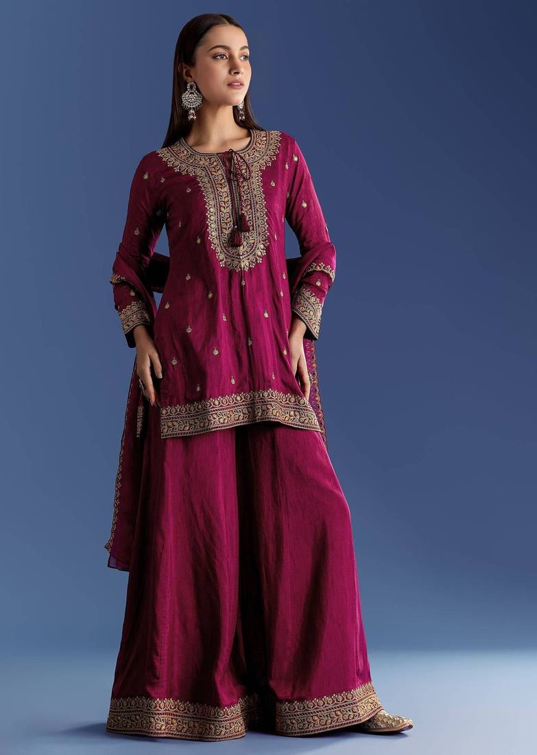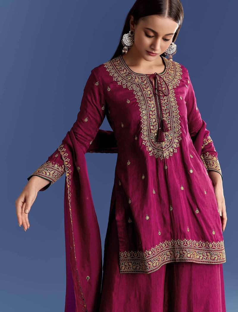| Product Name | Maroon Cotton Kurta Sharara Set With Embroidery | |