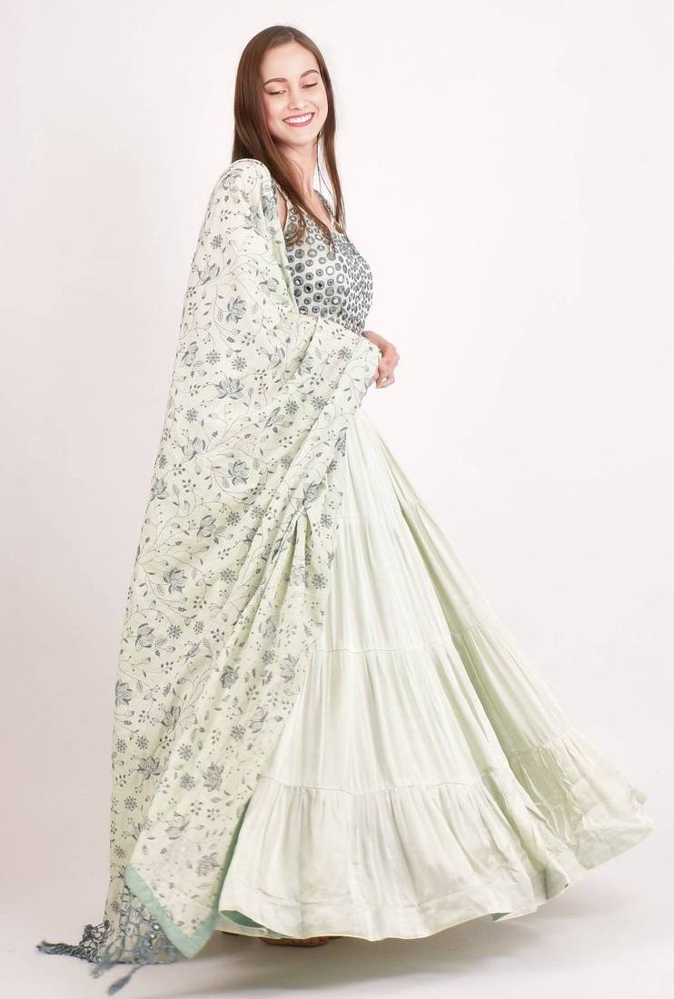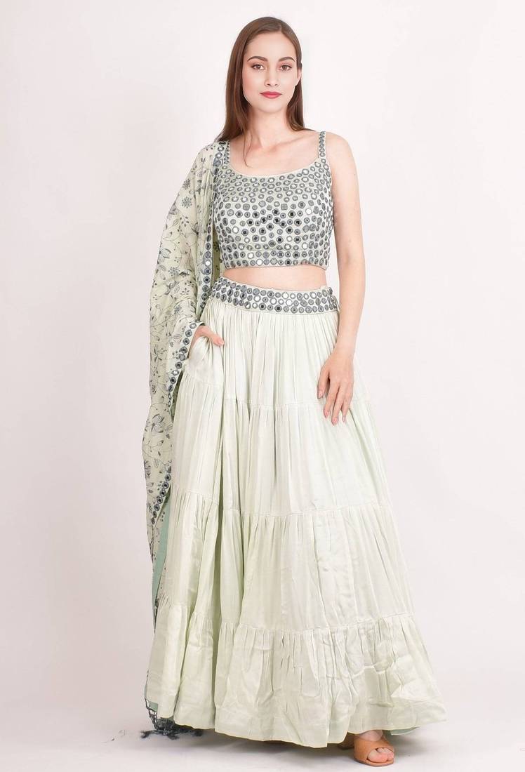 | Product Description | Elegant Design Stunning Mint Green Lehenga Choli Set Featuring An Intricately Embellished Sequined Work Bodice For A Festive Look. Tiered Skirt Beautifully Crafted Tiered Lehenga Skirt With A Flowy Silhouette That Adds Grace And Movement To Your Ensemble. Sequined Work Embellishment The Choli Bodice Is Adorned With Circular Sequined Work Detailing, Lending A Traditional Yet Contemporary Charm. Floral Embroidered Dupatta Comes With A Complementary Floral Embroidery Dupatta Featuring Delicate Tassel Detailing Along The Border. Occasion Wear Perfect For Weddings, Festive Celebrations, And Special Occasions Where You Want To Make A Lasting Impression. |