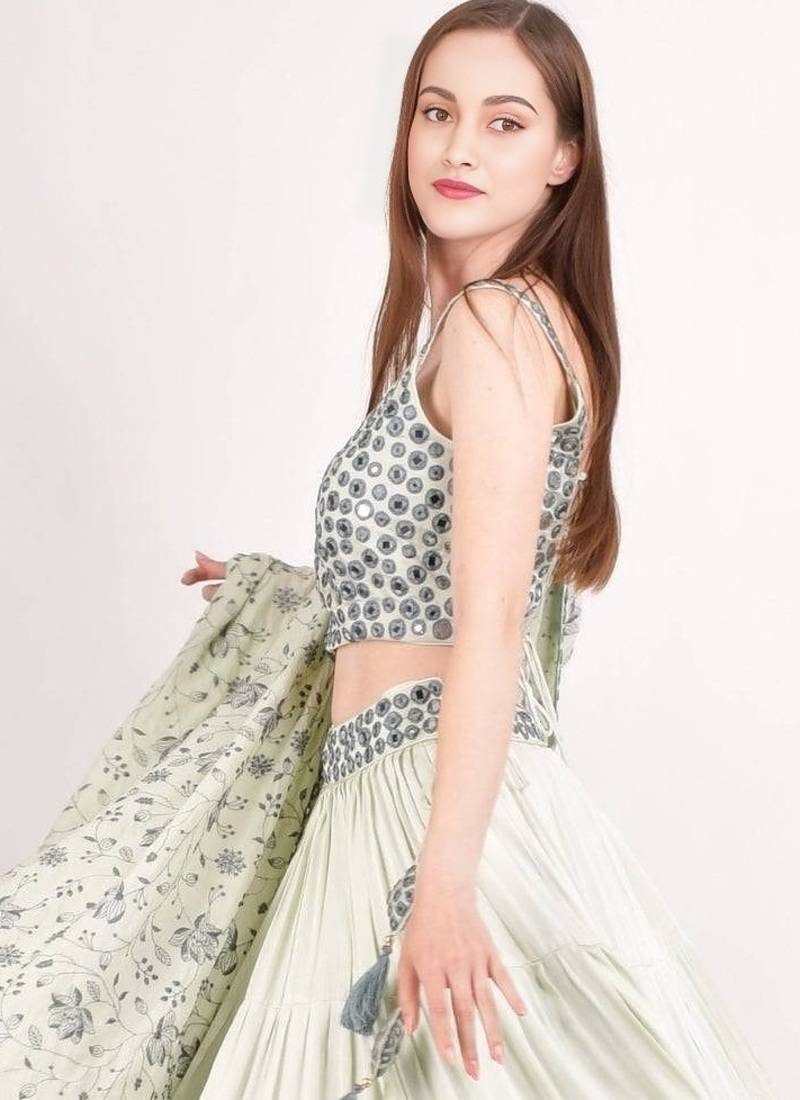 | Product Name | Mint Green Embroidered Work Rayon Fabric Lehenga Choli With Dupatta. | |