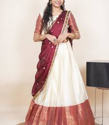 Beautiful south indian style semi-stitched half saree with blouse and rangoli dupatta for women