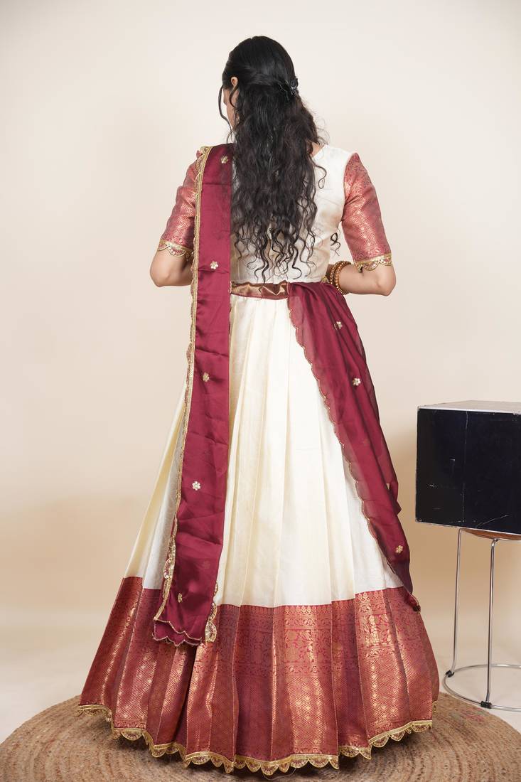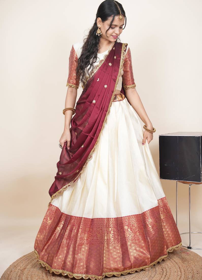 Product Name Beautiful South Indian Style Semi Stitched Half Saree With Blouse And Rangoli Dupatta For Women