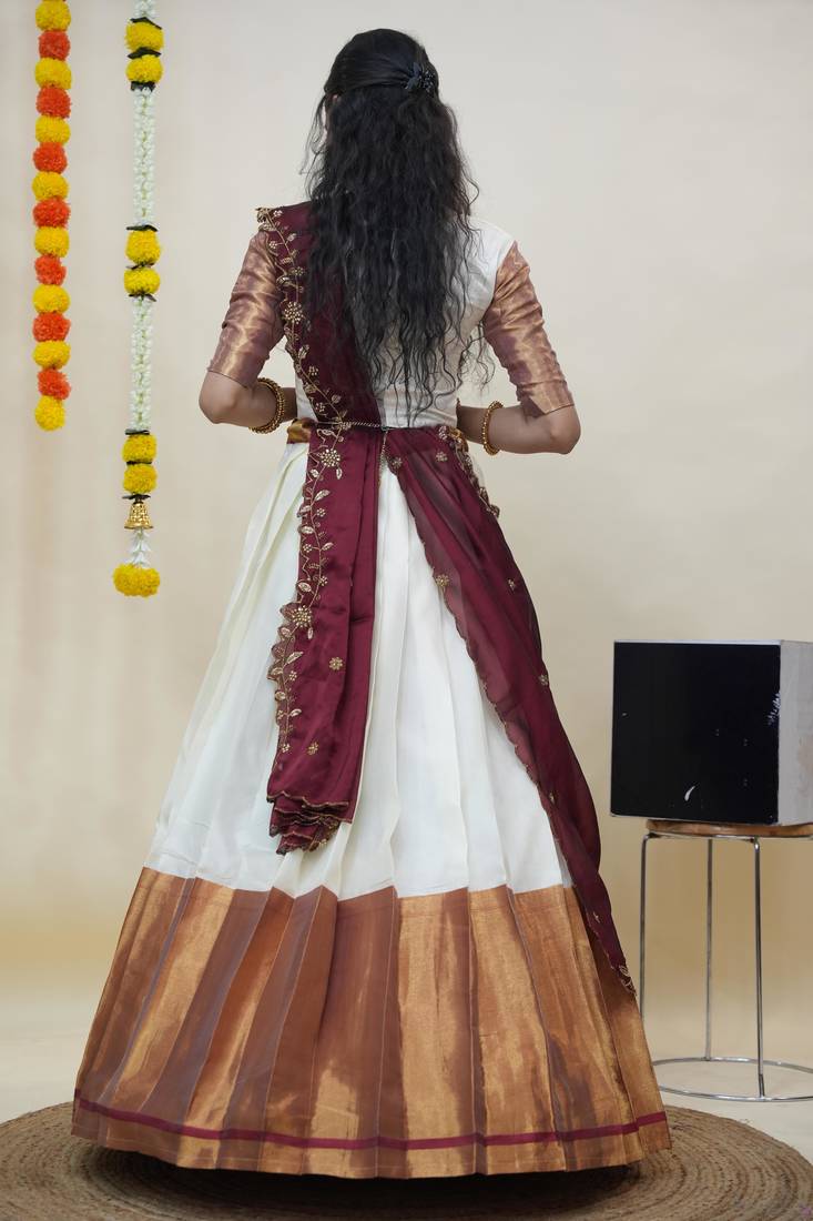 | Product Name | Beautiful South Indian Style Semi Stitched Half Saree With Blouse And Rangoli Dupatta For Women | |