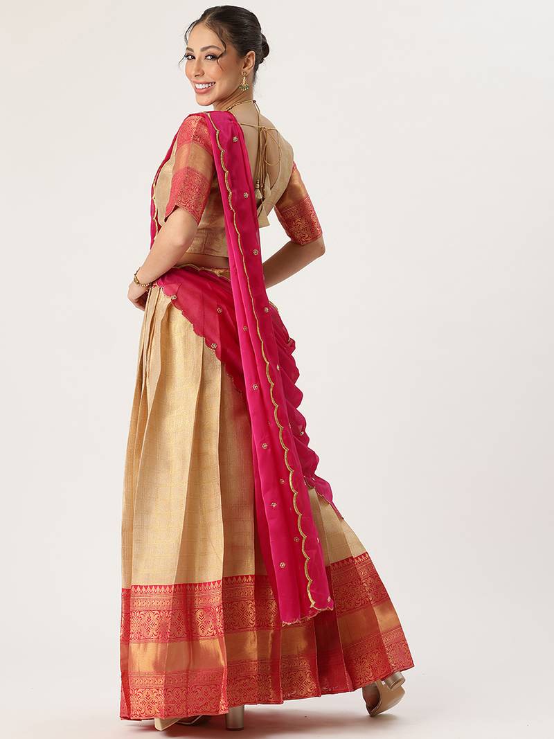 Beautiful South Indian Style Semi-Stitched Half Saree with Blouse and Rangoli Dupatta for Women