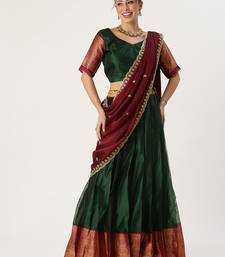 Beautiful south indian style semi-stitched half saree with blouse and rangoli dupatta for women