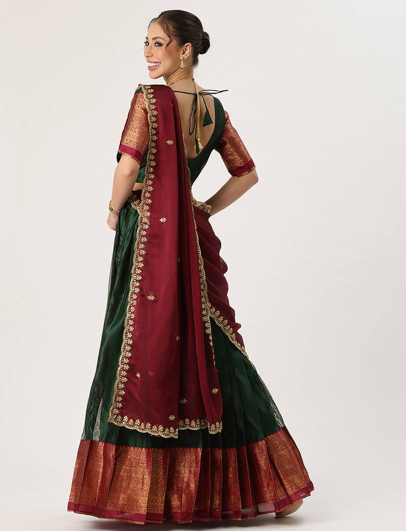 Beautiful South Indian Style Semi-Stitched Half Saree with Blouse and Rangoli Dupatta for Women