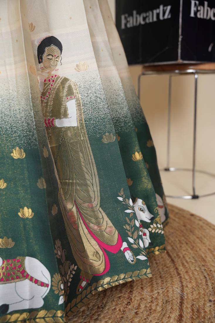 | • | Dupatta | : | Color- Dark Green / Fabric- Silk |
