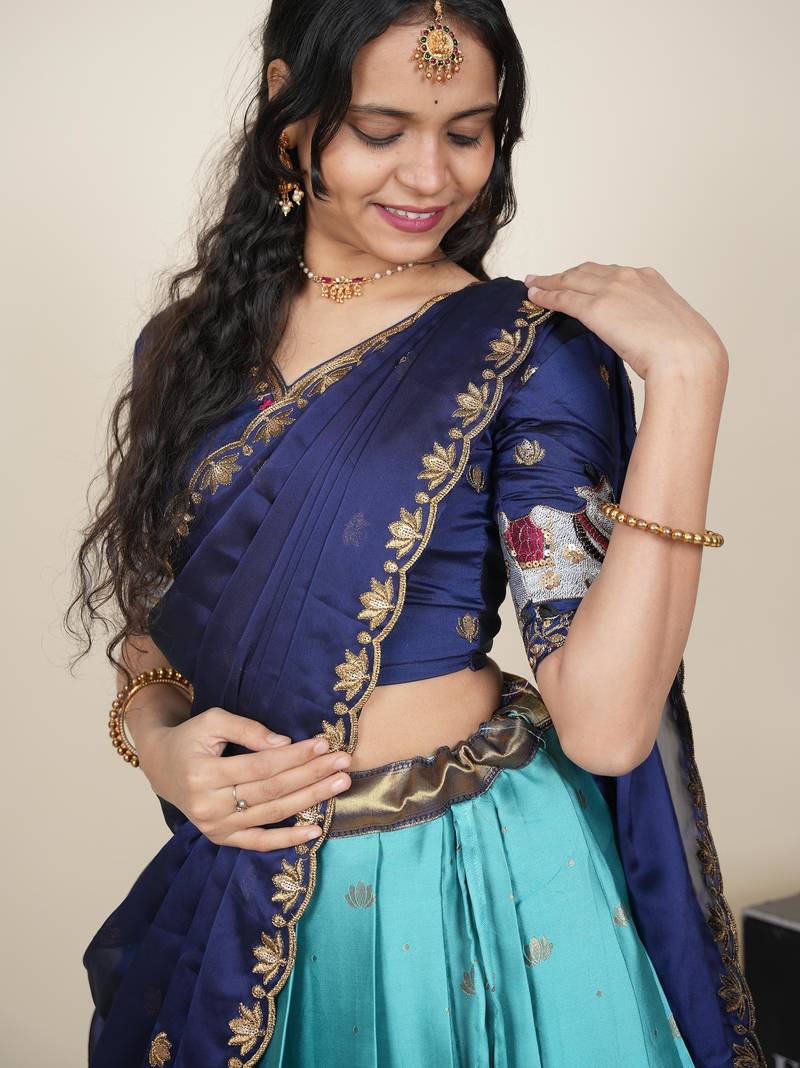 | Product Name | Beautiful South Indian Style Semi Stitched Half Saree With Embroidered Blouse And Rangoli Dupatta For Women | |