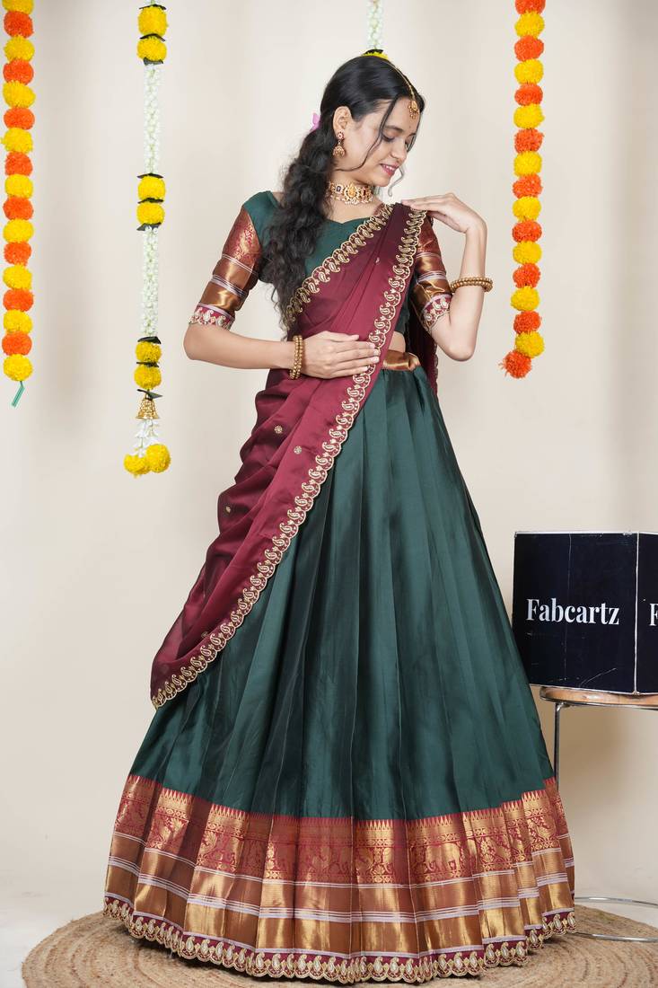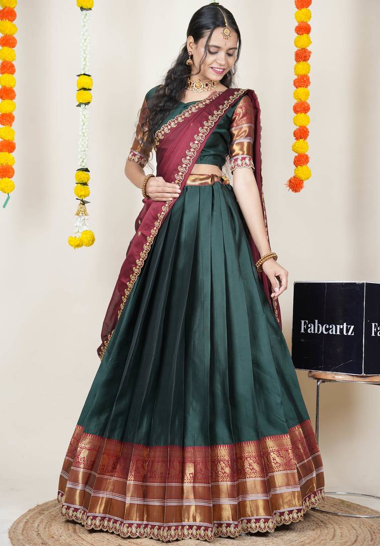 | Product Description | "Fabric: Lehenga Fabric : Lichi Silk Zari Work Choli Fabric: Lichi Silk Zari Work Dupatta Fabric: Rangoli Silk Pattern: Lehenga: Solid With Woven Blouse: Solid With Woven Stitch Type Lehenga Is Semi Stitched Choli Is Unstitched Length : Lehenga Length 42 Inch (Semi Stitched) Lehenga Waist Size – Upto 40 Inch Lehenga Flair 3.6 M Blouse 1 M Dupatta 2.40 M Ready To Ship." |