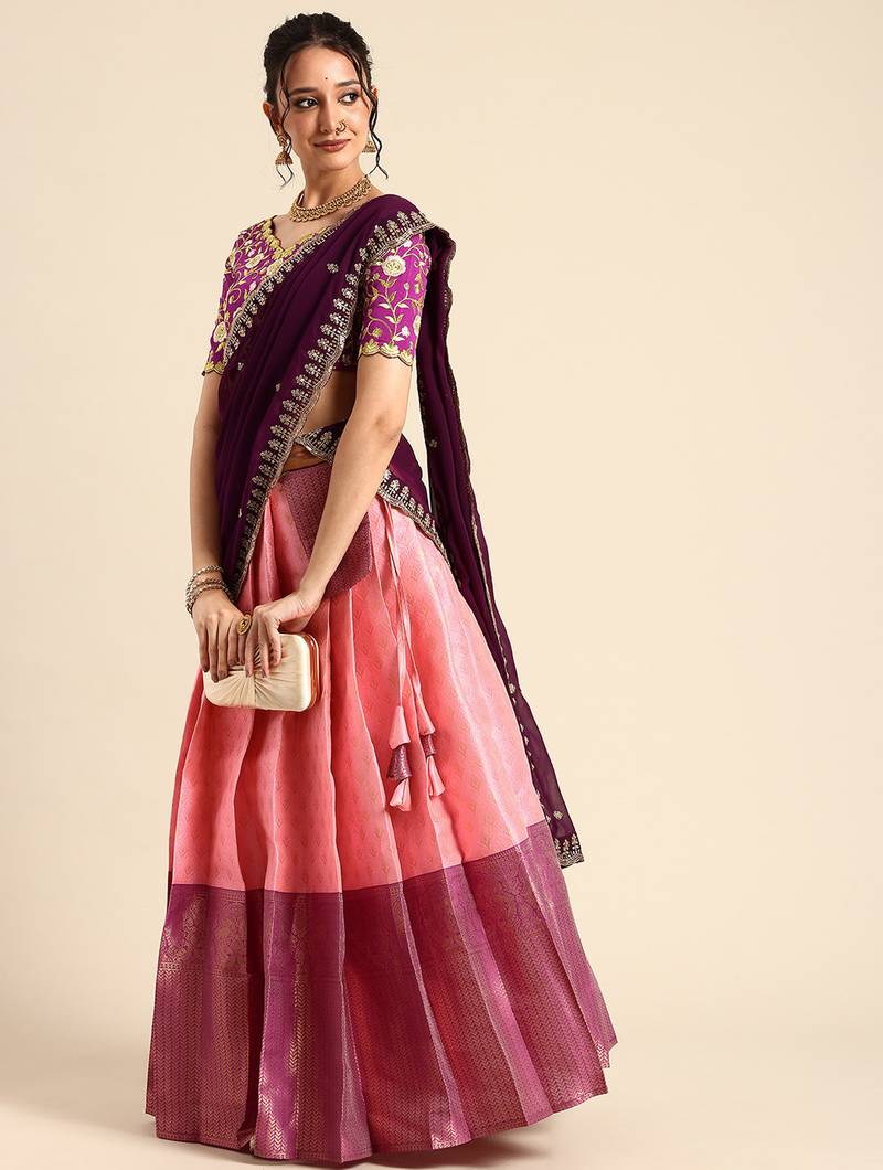 | Product Description | "Fabric: Lehenga Fabric : Lichi Silk Zari Work Choli Fabric: Taffeta Dupatta Fabric: Rangoli Silk Pattern: Lehenga: Woven Design Blouse: Embroidery Work Stitch Type Lehenga Is Semi Stitched Choli Is Unstitched Length : Lehenga Length 42 Inch (Semi Stitched) Lehenga Waist Size – Upto 40 Inch Lehenga Flair 3.6 M Blouse 1 M Dupatta 2.40 M Ready To Ship." |