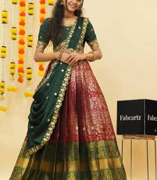 South indian style semi stitched lehenga choli with embroidery blouse and dupatta for women