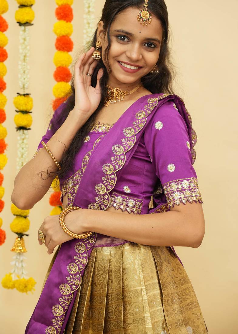 | Product Name | South Indian Style Semi Stitched Lehenga Choli With Embroidery Blouse And Dupatta For Women | |