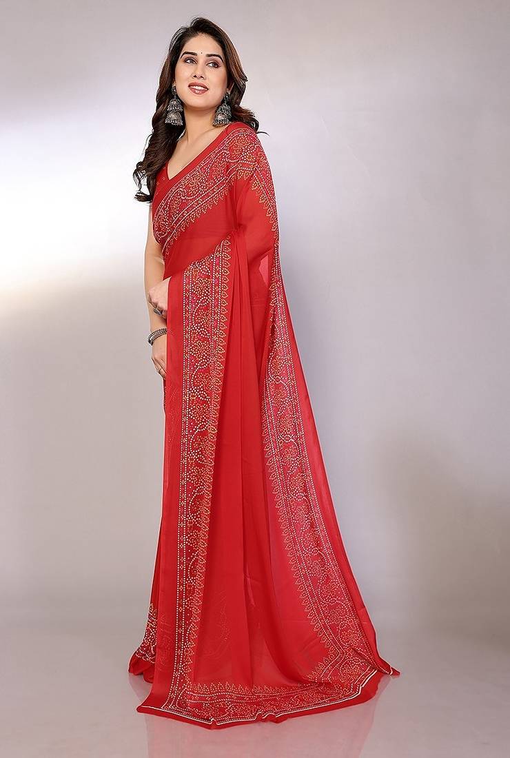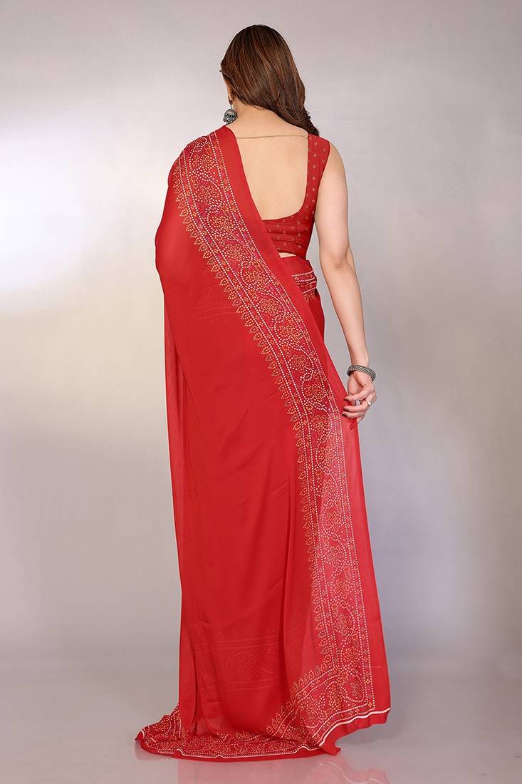 | Product Name | Red Printed Bandhani Chiffon Self Design Saree With Blouse | |