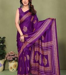 Purple printed, blocked printed daily wear chiffon, georgette saree with blouse
