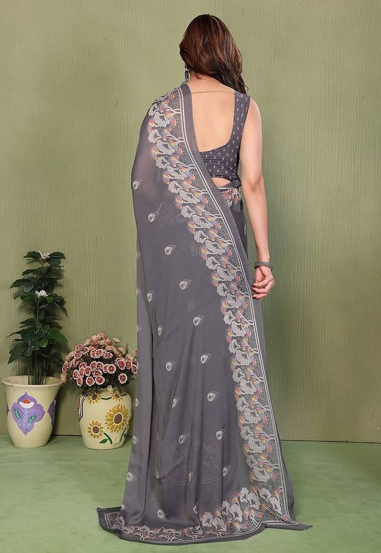 | Product Name | Grey Printed, Blocked Printed Hand Batik Chiffon, Georgette Saree With Blouse | |