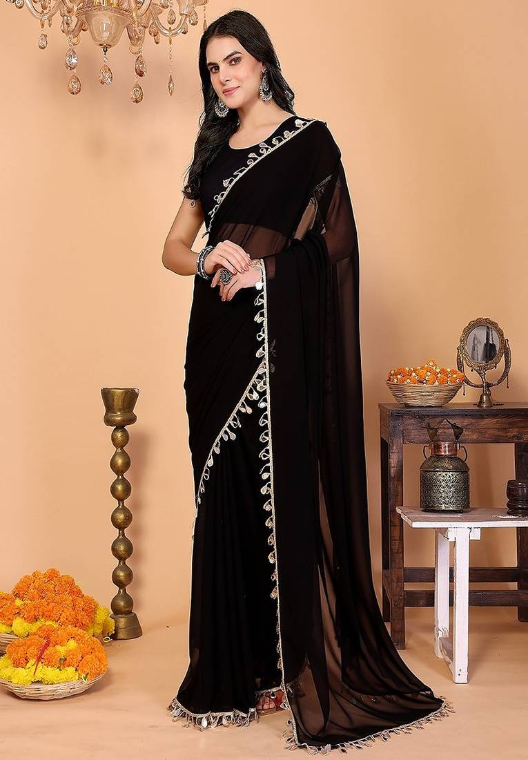 | Product Name | Black Wedding Party & Festive Georgette Embellished Saree With Blouse | |