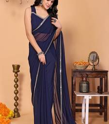Blue wedding party & festive georgette solid::Plain saree with blouse