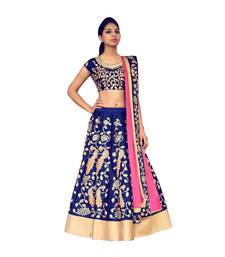 Fabron royal blue dori work raw silk semi stitched lehenga choli material with light pink dupatta