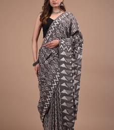 Black cotton hand block printed mulmul sarees with attach printed blouse