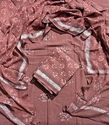 Brown hand block printed cotton suit with kota doriya dupatta unstitched