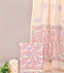 Cream hand block printed cotton suit with kota doriya dupatta unstitched