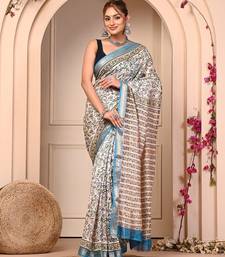Multicolor maheshwari silk saree with woven borders and beautiful hand block print