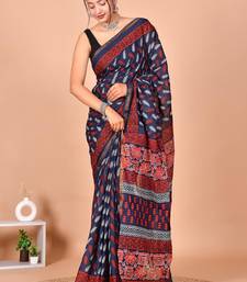 | Product Name | Navy Blue Block Print Cotton Zari Sarees With Running Blouse | |