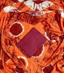 Orange hand block printed cotton suit with kota doriya dupatta unstitched
