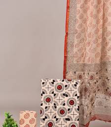 Peach hand block printed cotton suit with kota doriya dupatta unstitched