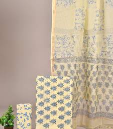 Peach hand block printed cotton suit with kota doriya dupatta unstitched