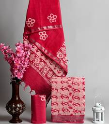 Pink bagru hand block printed linen suits with zari border unstitched