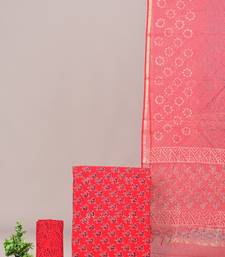 Pink hand block printed cotton suit with kota doriya dupatta unstitched