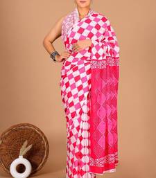 Pink soft mul cotton saree with unstiched attached blouse piece