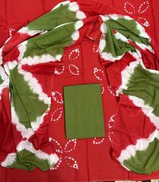 Red hand block printed cotton suit with kota doriya dupatta unstitched
