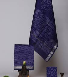 Royal blue exclusive new hand block printed maheshwari silk zari border suits pieces unstitched