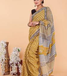 | Product Name | Yellow Cotton Hand Block Printed Mulmul Sarees With Attach Printed Blouse | |
