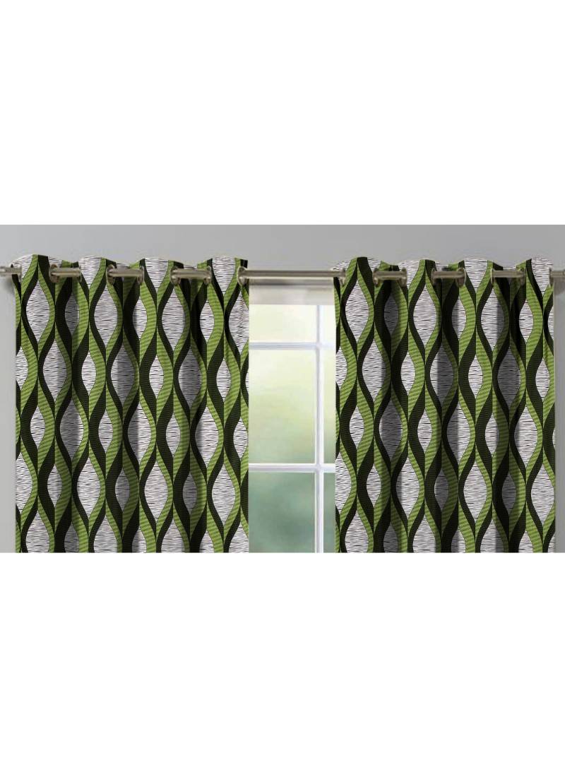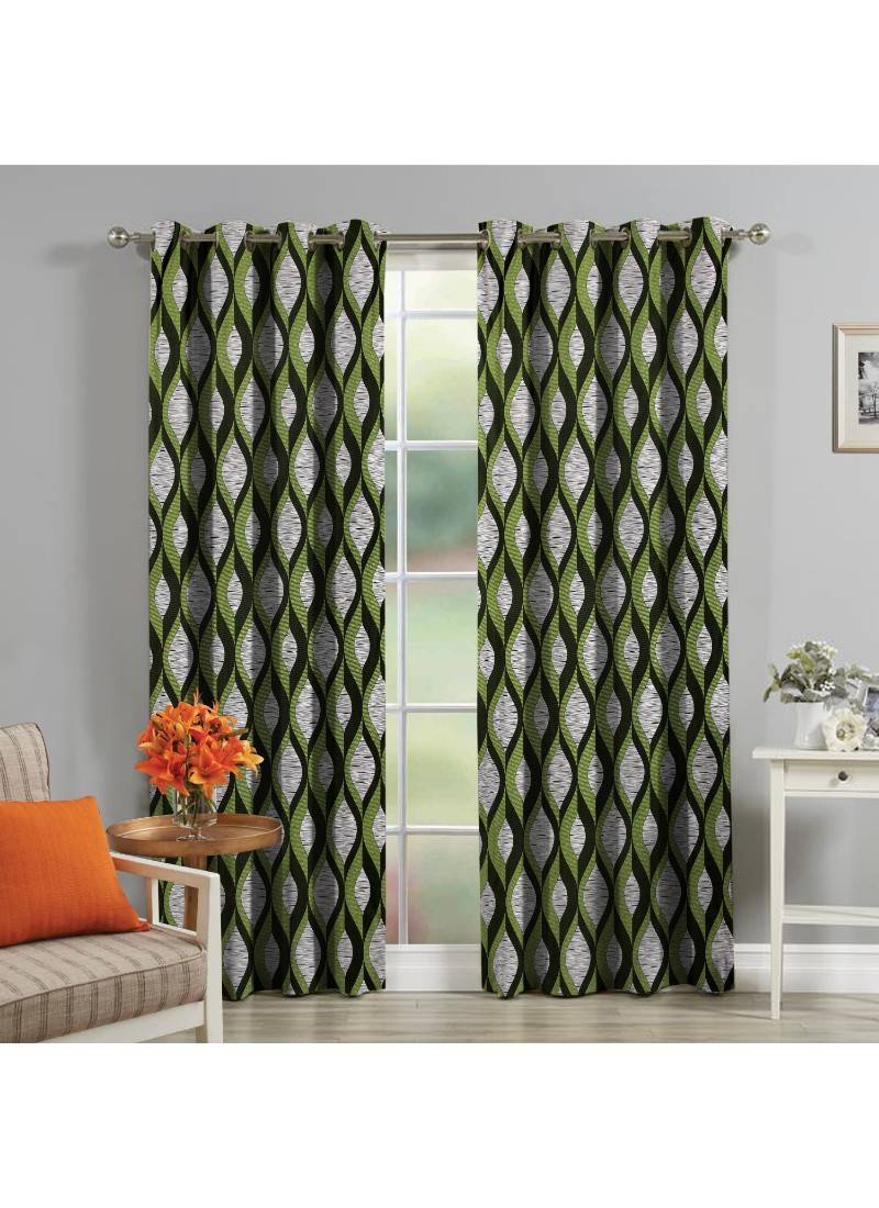 Fabzi green printed polyester window curtains set of 2 pieces (width 4 ft x length 5 feet)