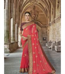 Peach color embroidered georgette saree with blouse piece