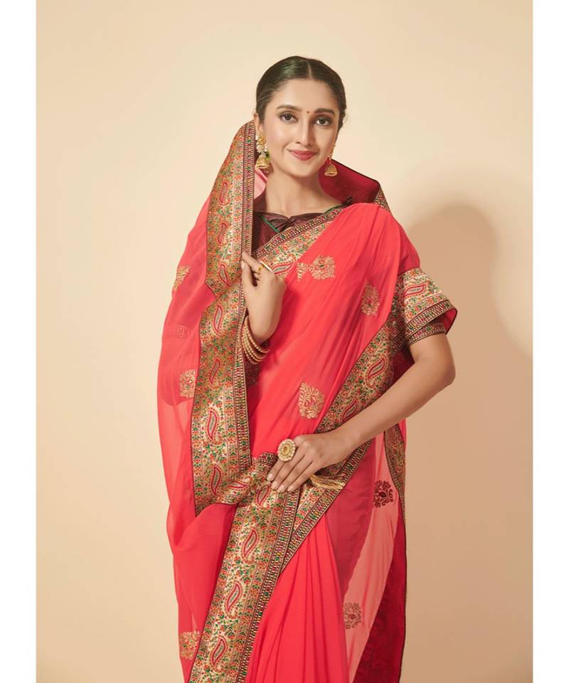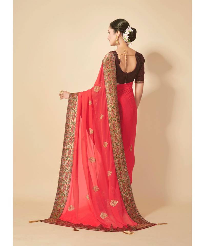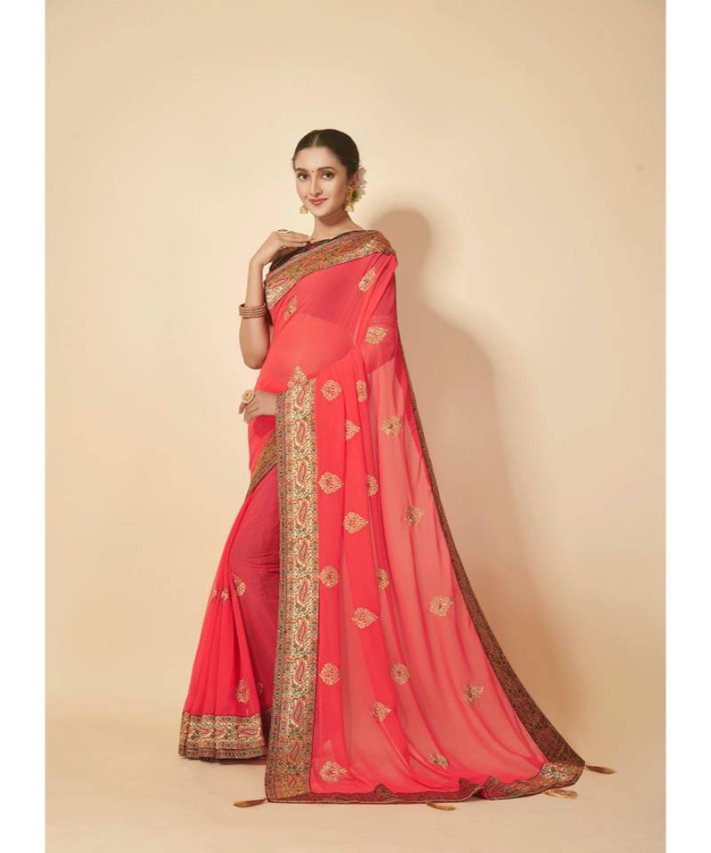 | Product Name | Peach Color Embroidered Georgette Saree With Blouse Piece | |