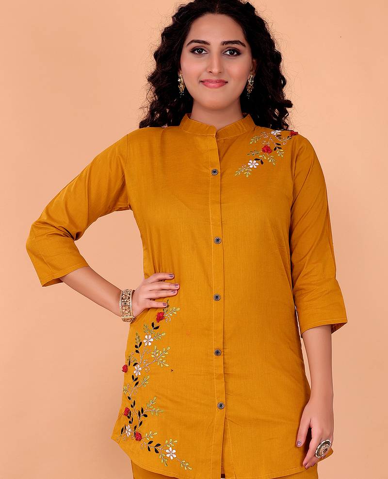 Fashion Petals Cotton Embroidery Tunic Co Ord Set, Designed For Modern Women Who Love Comfort With Style. Crafted From Premium Quality Breathable Cotton, This Stylish Co Ord Set Features A Beautifully Embroidered Tunic Paired With Perfectly Coordinated Bottoms. The Soft Fabric Ensures All Day Comfort, Making It Ideal For Daily Wear, Office Wear, Festive Gatherings, Or Casual Outings.The Delicately Crafted Embroidery Adds A Graceful Ethnic Touch While Maintaining A Contemporary Silhouette. The Tunic Offers A Flattering Fit With A Minimal Yet Classy Design That Blends Tradition And Trend Effortlessly. Whether Styled With Flats For A Relaxed Look Or Accessorized For A Festive Vibe, This Co Ord Set Delivers Versatility And Elegance In One Outfit.