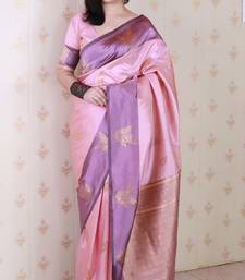 Baby pink soft art silk saree with unstiched blouse