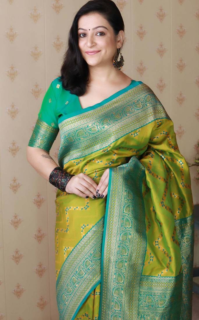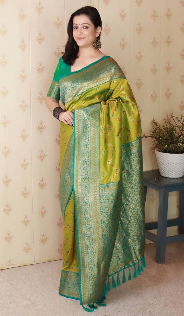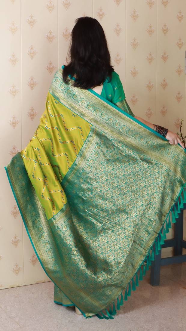 Mehendi banarasi soft art silk saree with unstiched blouse