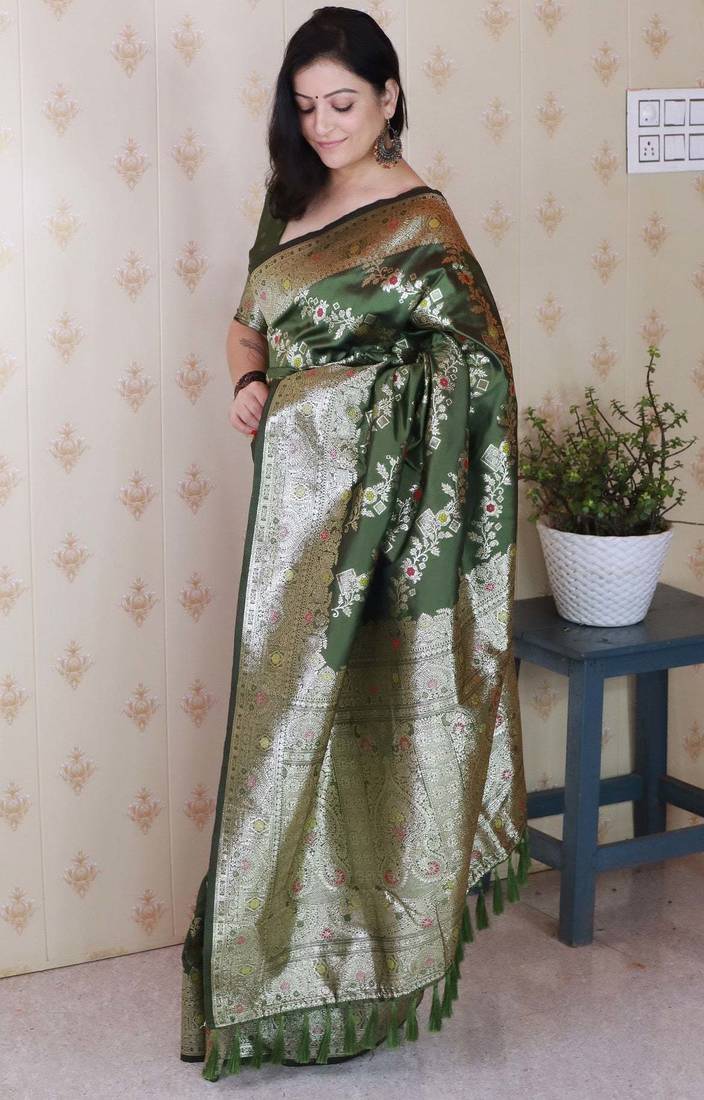 Mehendi banarasi soft art silk saree with unstiched blouse