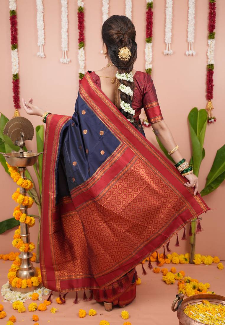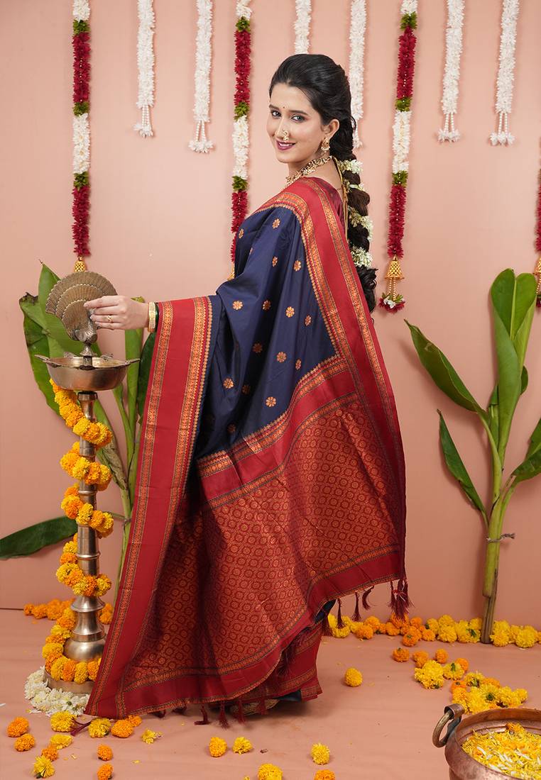 | • | Saree | : | Color- Navy Blue / Fabric- Silk Blend |