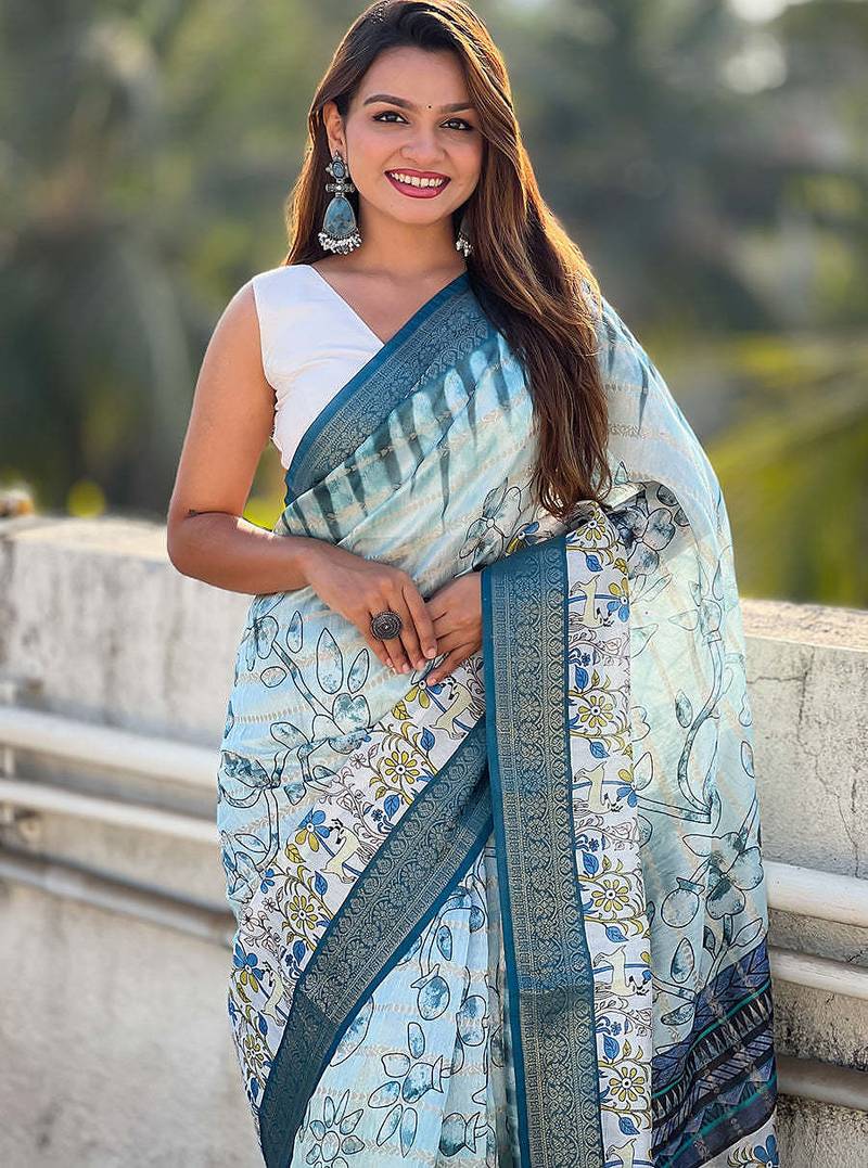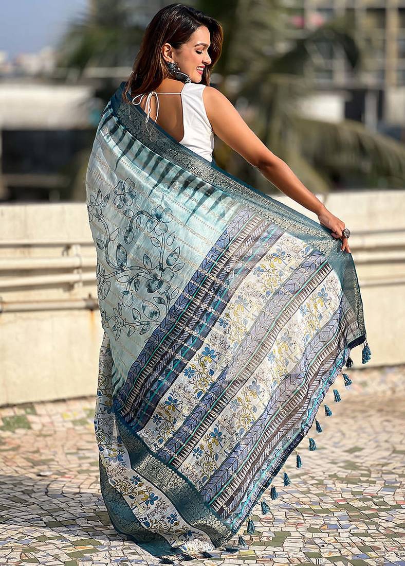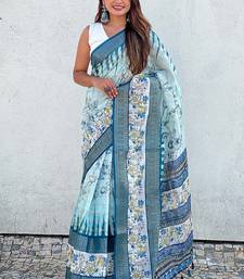 Sky soft chanderi crush saree with unstiched blouse