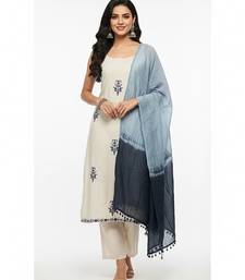 Beige cotton embroidered kurta sets